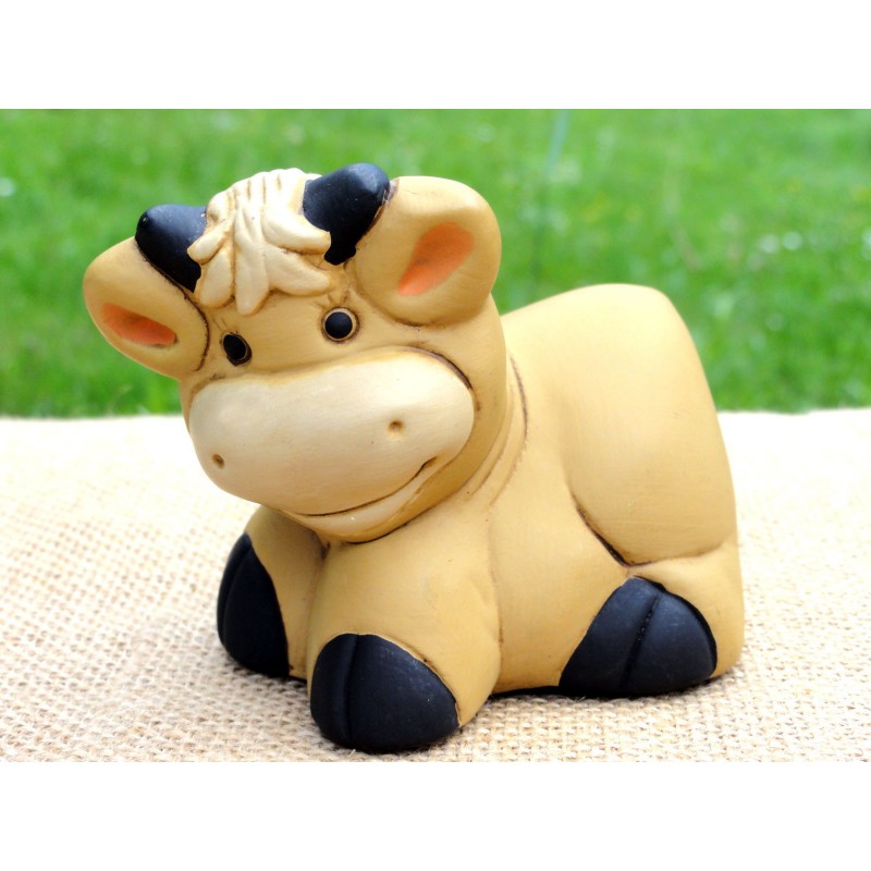 D'un joli ton ocre, ce bœuf au sourire attendrissant est très bien réalisé. Élément de décoration ou complément pour une crèche de Noël, sa représentation très gracieuse et son originalité en font une jolie céramique péruvienne.