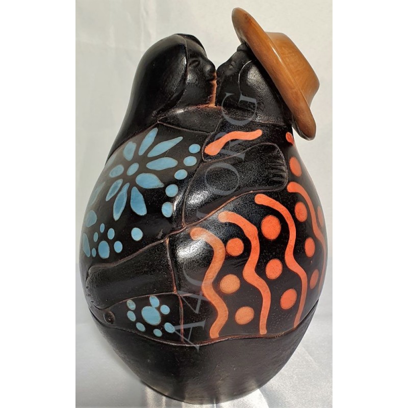 Céramique représentant un couple d'amoureux enlacer, typique de l'artisanat de Chulucanas au Pérou.