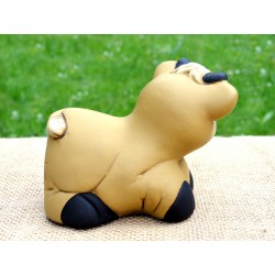 D'un joli ton ocre, ce bœuf au sourire attendrissant est très bien réalisé. Élément de décoration ou complément pour une crèche de Noël, sa représentation très gracieuse et son originalité en font une jolie céramique péruvienne.