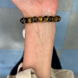 Bracelet composé d'Œil du Tigre rondes. Le support élastique lui permet de s'adapter à tous les poignets.