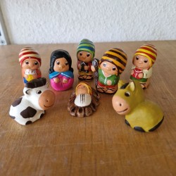 Crèche de Noël en terre cuite composée de 8 personnages, contenant le petit Jésus, Joseph, Marie, les 3 Rois Mages, l'Âne et le Bœuf.