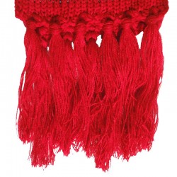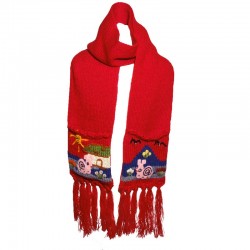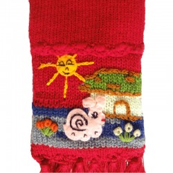 Écharpe rouge à franges brodée à la main par les femmes des quartiers défavorisés de Lima.