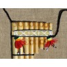 Faite de deux rangées de sept et huit tubes et d'un cordon pour la suspendre, elle a deux pompons qui la décorent.