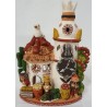 Photophore en Terre Cuite représentant une Église et un Marché finement décoré.
