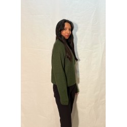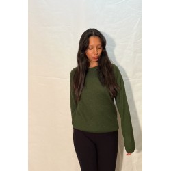 Ce Pull uni Vert avec un Col Rond est composé à 50% de laine d'Alpaga, idéal pour les températures d'hiver par dessus une Chemise ou un Chemisier.