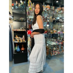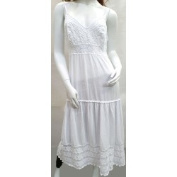Robe Blanche unie en Coton sans manche avec des bretelles ajustables.